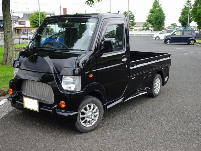 格好良くカスタムした「スズキ キャリイトラック」を入庫!すべて込みこみ75万円のお買い得価格で販売します。(消費税、自動車税、リサイクル料などすべて含んだお値段です)