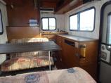ゆっくりとくつろげる対面式のダイネットソファは、展開するとフルフラットのベッドにもなります。それに加えて、身長180cmの大人が縦に三人寝ることができるバンクベッドも装備しているので、全部で一度に5~6人が就寝することができます。ファミリーユースにも余裕で対応しますよ。